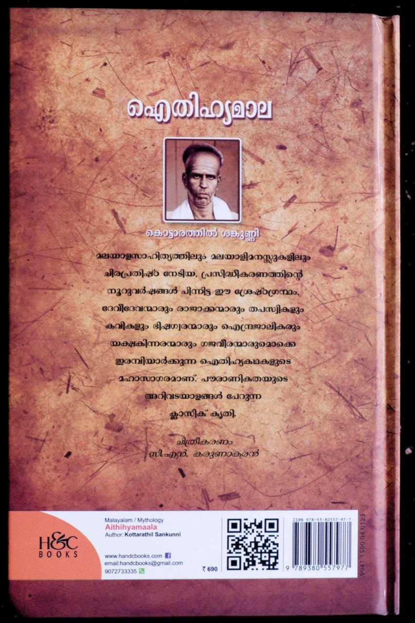 ദേവീദേവന്മാരും ഋഷികളും സിദ്ധന്മാരും യക്ഷഗന്ധര്വ്വാദികളും ഭരണാധിപരും മഹാത്മാക്കളും മഹാമാന്ത്രികര്, കവികള് ഗജശ്രേഷ്ഠന്മാര് എല്ലാം അണിനിരക്കുന്ന കഥകളുടെ മഹാപ്രപഞ്ചം. മലയാള മനസ്സില് ചിരപ്രതിഷ്ഠ നേടിയ മഹാഗ്രന്ഥമാണ് കൊട്ടാരത്തില് ശങ്കുണ്ണിയുടെ ഐതിഹ്യമാല. ബാലകൗമാരമനസ്സുകളില് ഐതിഹ്യമാല അത്ഭുതകരമായ സ്വാധീനമാണു ചെലുത്തുന്നത്. ലോലഹൃദയങ്ങളെ വശീകരിക്കാന് ശ്രീ ശങ്കുണ്ണിയുടെ തൂലികയ്ക്കുള്ള ശക്തി ഒന്നു പ്രത്യേകമാണ്. ഐതിഹ്യമാലയിലെ ഒരു കഥ വായിച്ചാല് അതു തീര്ച്ചയായും സംഭവിച്ചതാണെന്നേ ഇളംമനസ്സുകള്ക്കു തോന്നൂ. അത്ര തന്മയീഭാവമാണ് അതിലെ ഓരോ കഥയ്ക്കും.